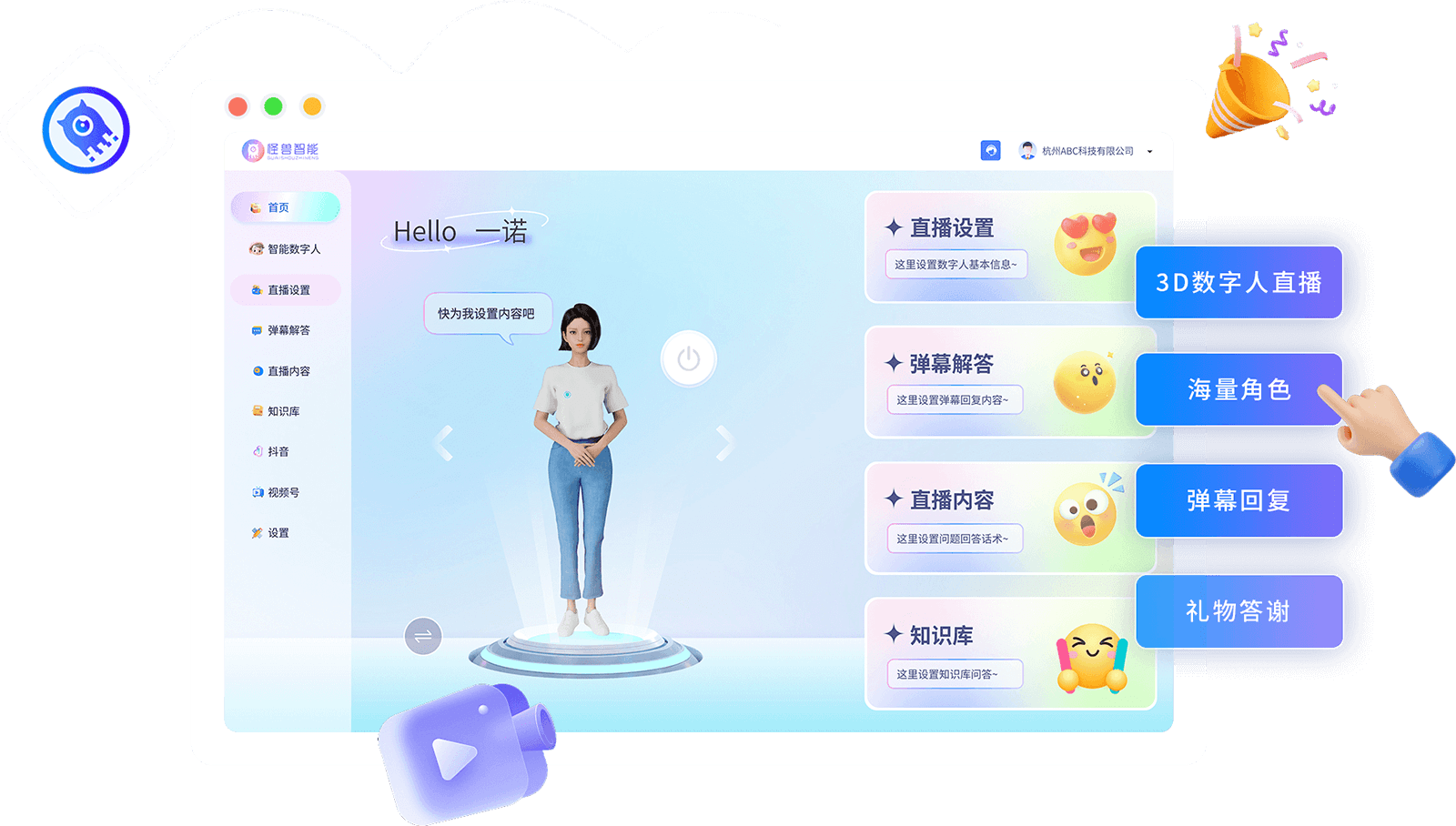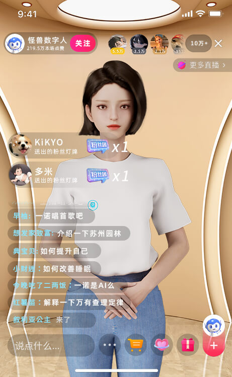 怪獸AI數(shù)字人推出的[虛擬化身]是3D數(shù)字人應(yīng)用工具,支持真人動(dòng)捕驅(qū)動(dòng)+智能腳本驅(qū)動(dòng)的 方式,采用自研的視覺(jué)捕捉技術(shù)實(shí)時(shí)驅(qū)動(dòng)數(shù)字人直播,同時(shí)支持AI智能問(wèn)答、 姿態(tài)交互、動(dòng)作交互等有趣玩法。